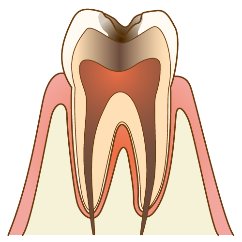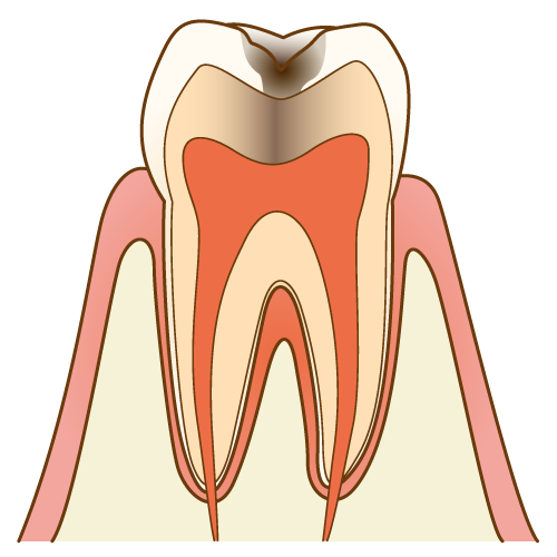 虫歯が進行して、象牙質というエナメル質の下の部分に虫歯が進んだ状態です。