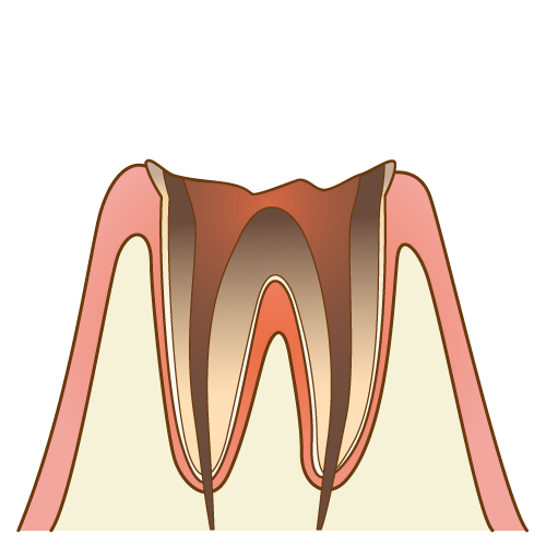 歯の神経が再生することが出来なくなってしまう範囲まで虫歯菌に侵されてしまっている状態です。