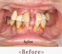 前歯の部分に4本のインプラントを顎の骨に埋め込み、その4本のインプラントで12本分の歯を作ることができます。