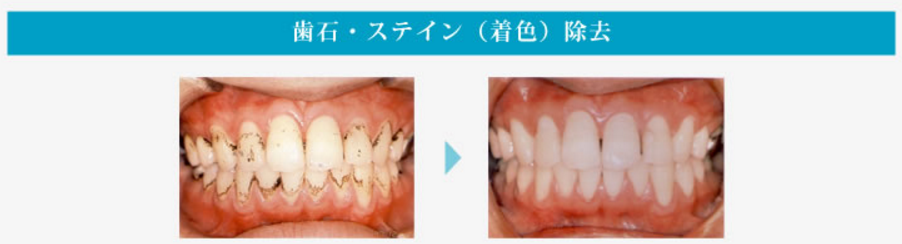 パーフェクトクリーニングは、歯に水と微粒子のパウダーを吹き付け、歯の表面に付着した頑固な着色(タバコのヤニ、コーヒーなどの着色汚れ)を吹き飛ばしていきます。